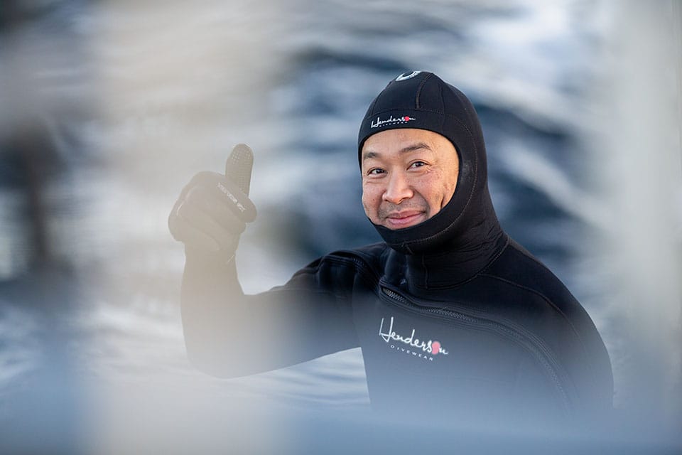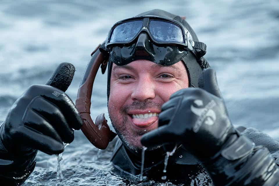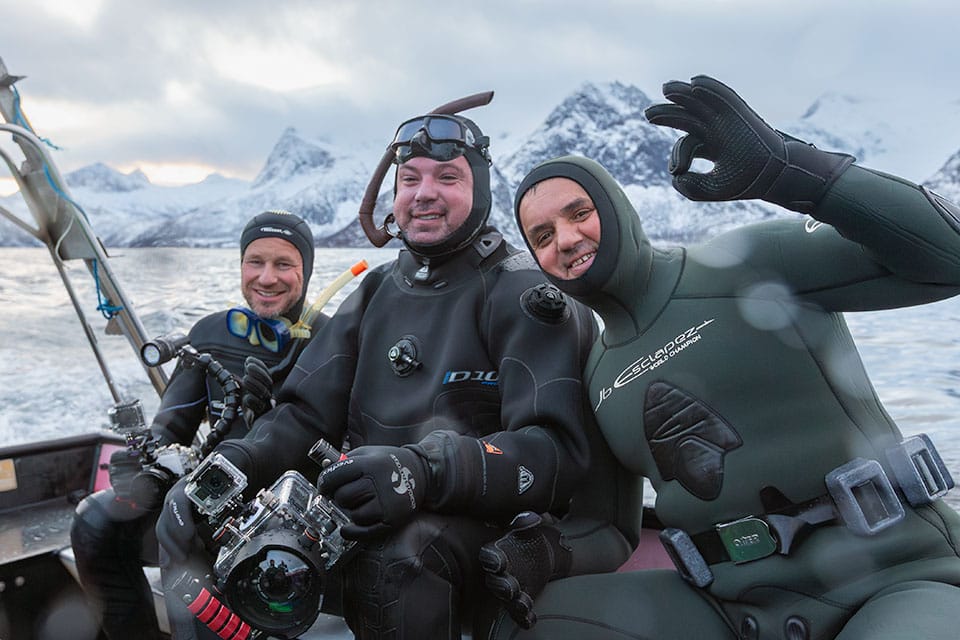 Whether above or below the surface, the cold is a constant challenge. The wind chill on the boat can be biting, and the frigid waters quickly leave your fingers and toes numb. Daylight is often limited, making high ISOs essential to capture the moment. Thick 5 mm gloves underwater can make handling your camera tricky, and it may take some practice to get the perfect shot.